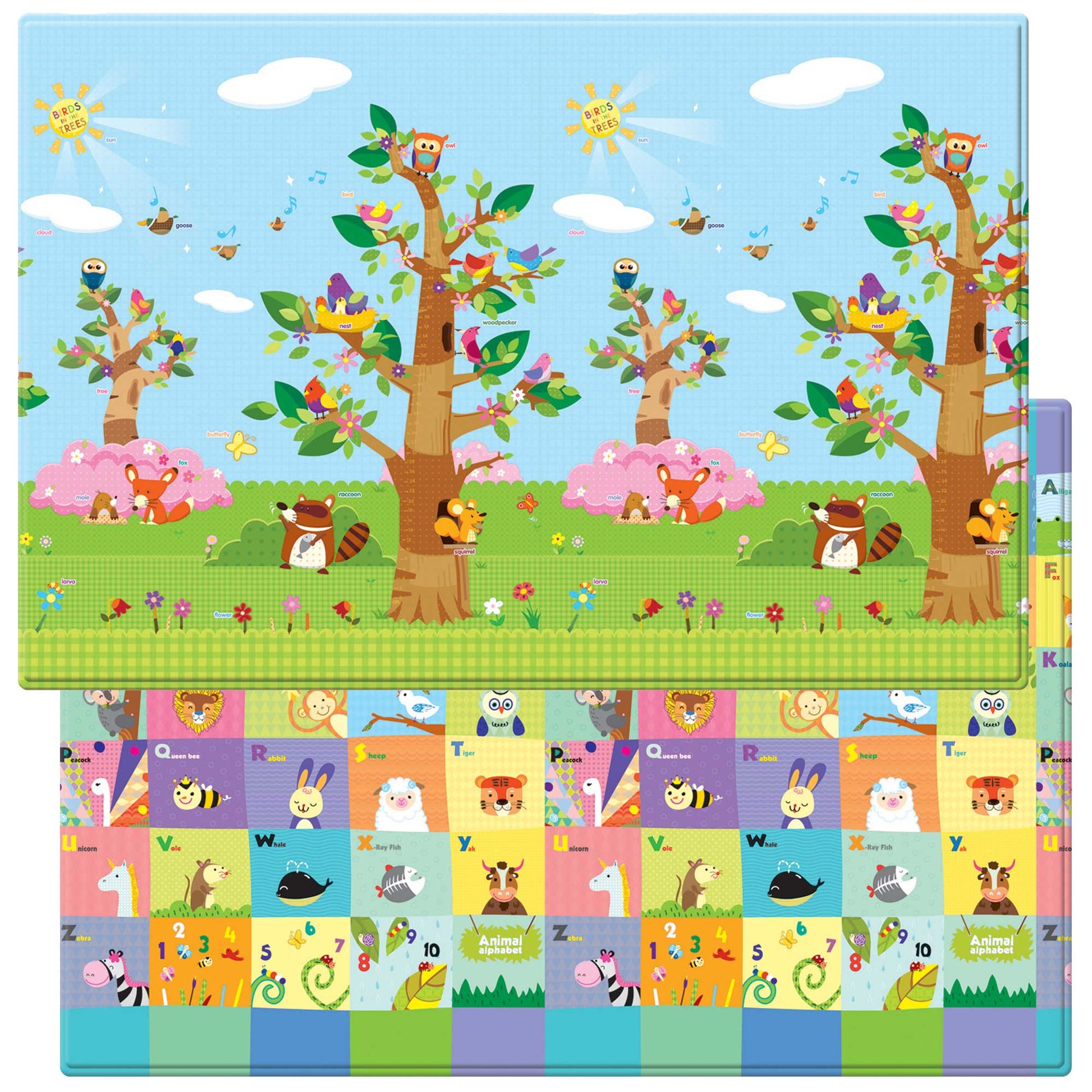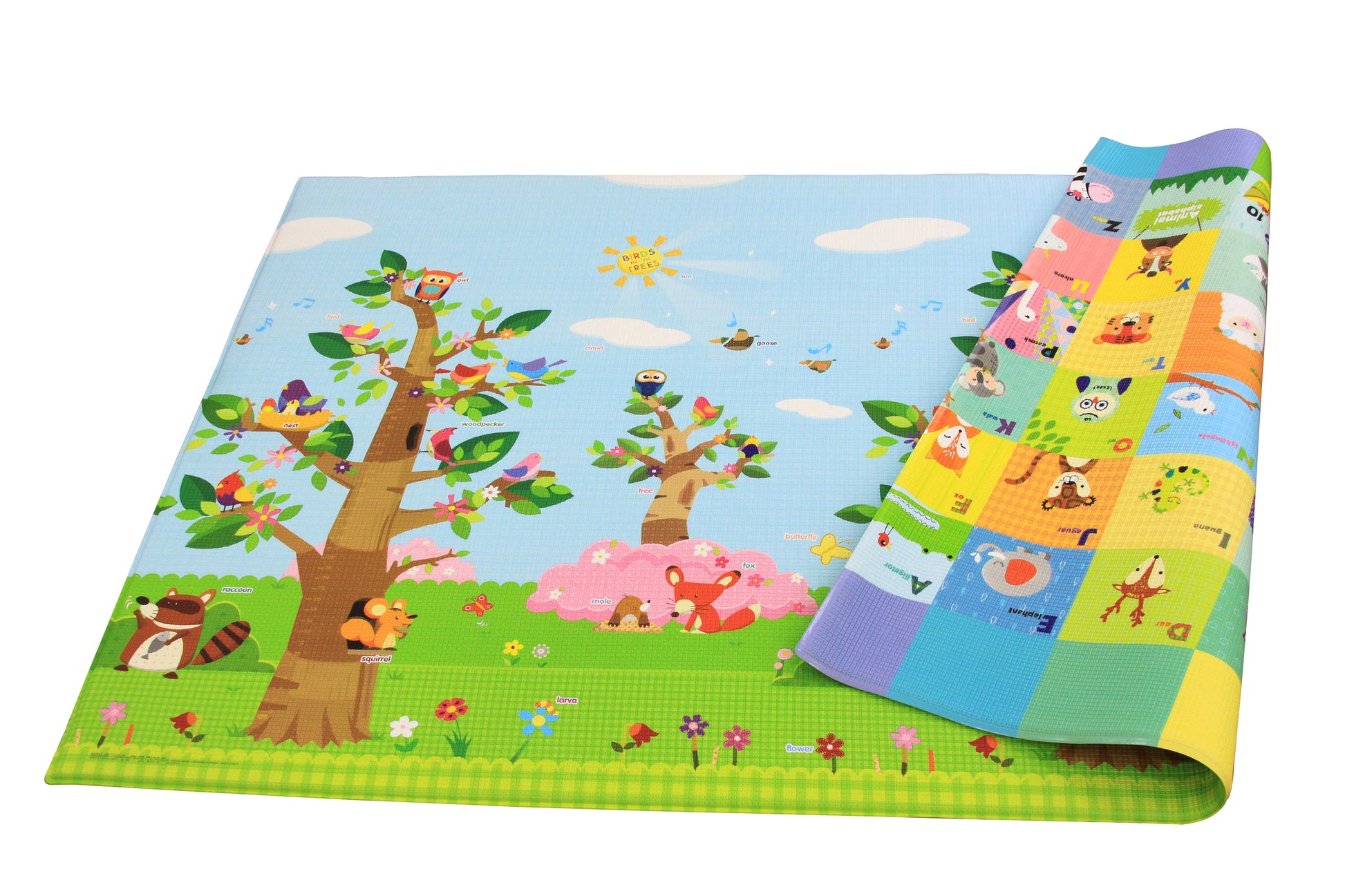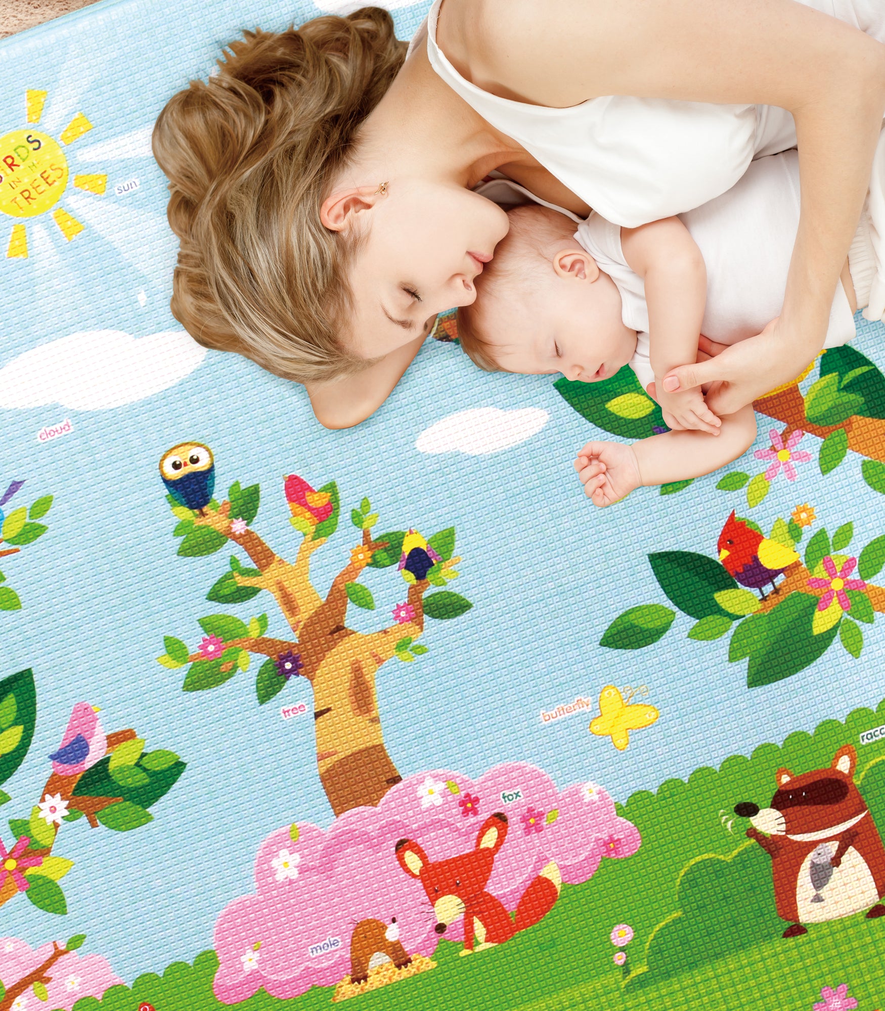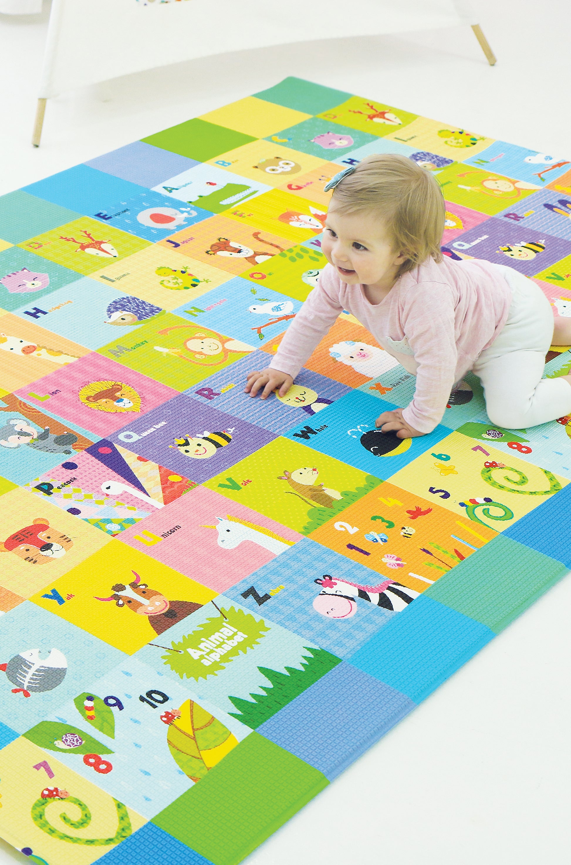 Transform any floor into a safe, stimulating space for baby with this ultra-cushy playmat that absorbs the impact of falls and tumbles as they discover the world around them. Larger than conventional mats, it provides little ones and family members plenty of room to bond and grow. Each mat is reversible, with educational, stimulating illustrations for a baby on one side and an interior design aesthetic on the other. An extra-durable, one-piece design makes it easy to clean, roll away, and enjoy for years to come.