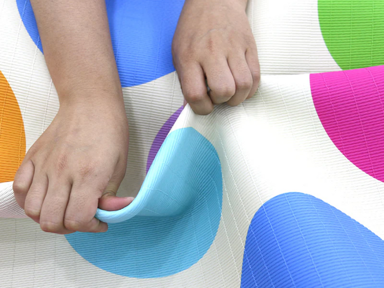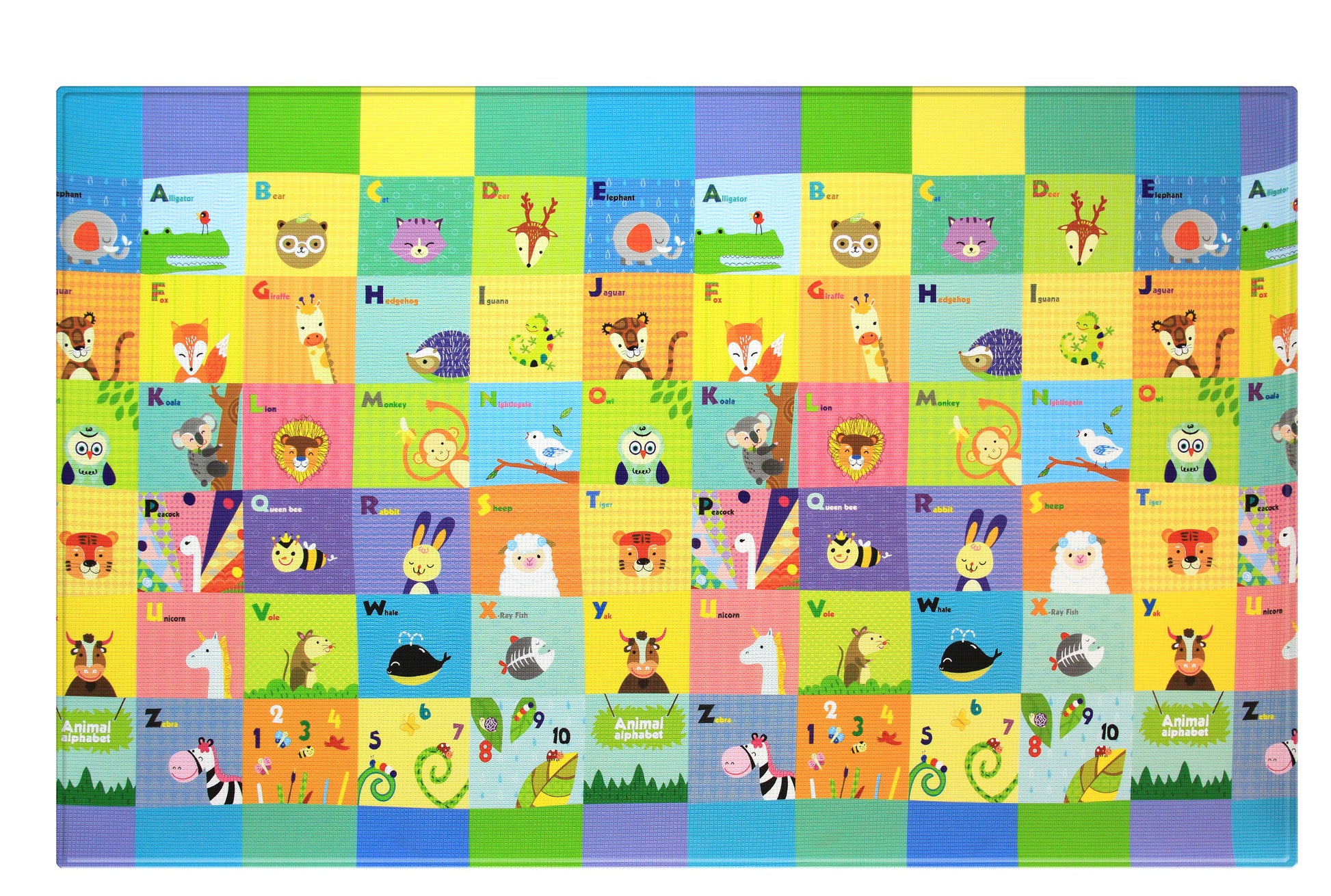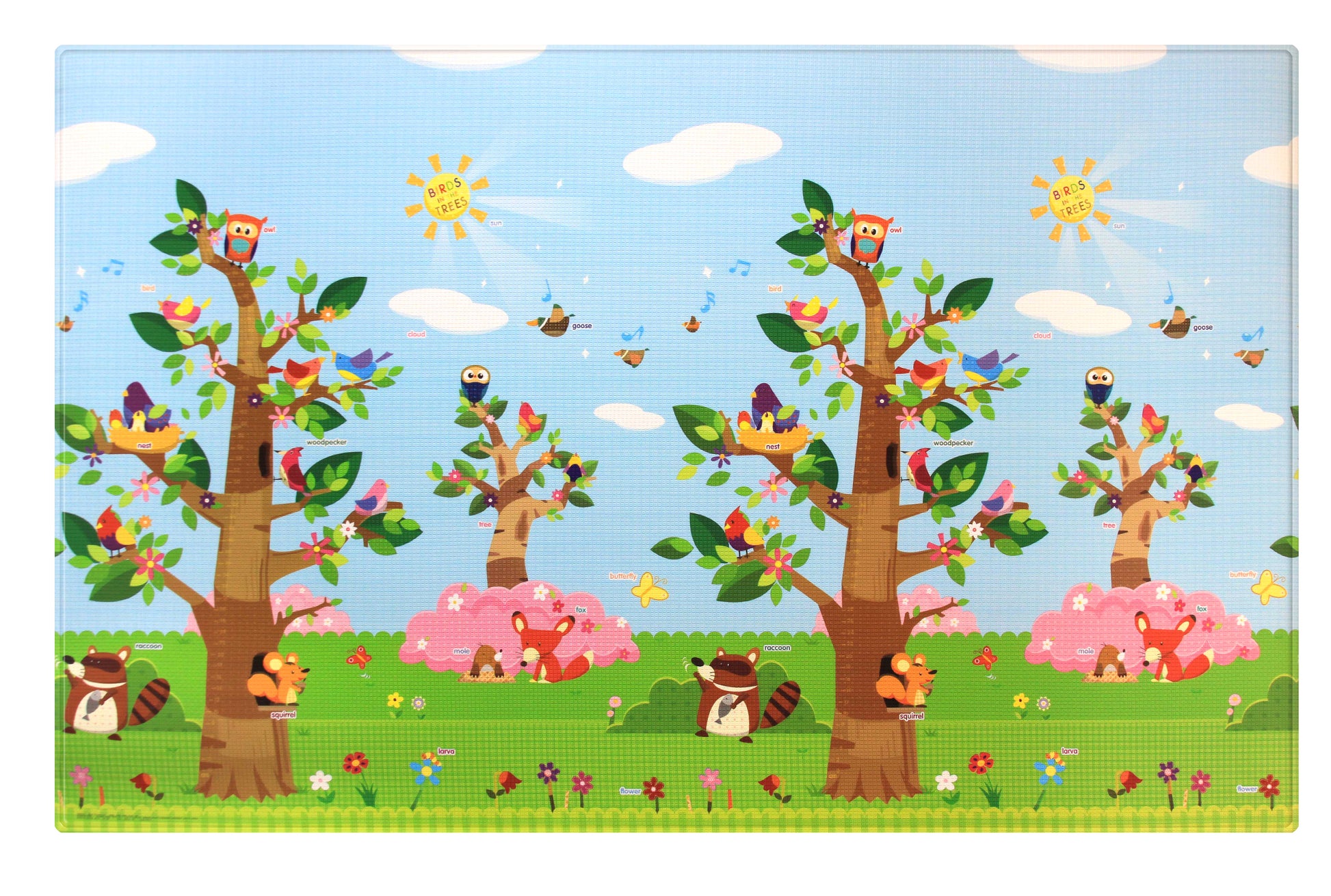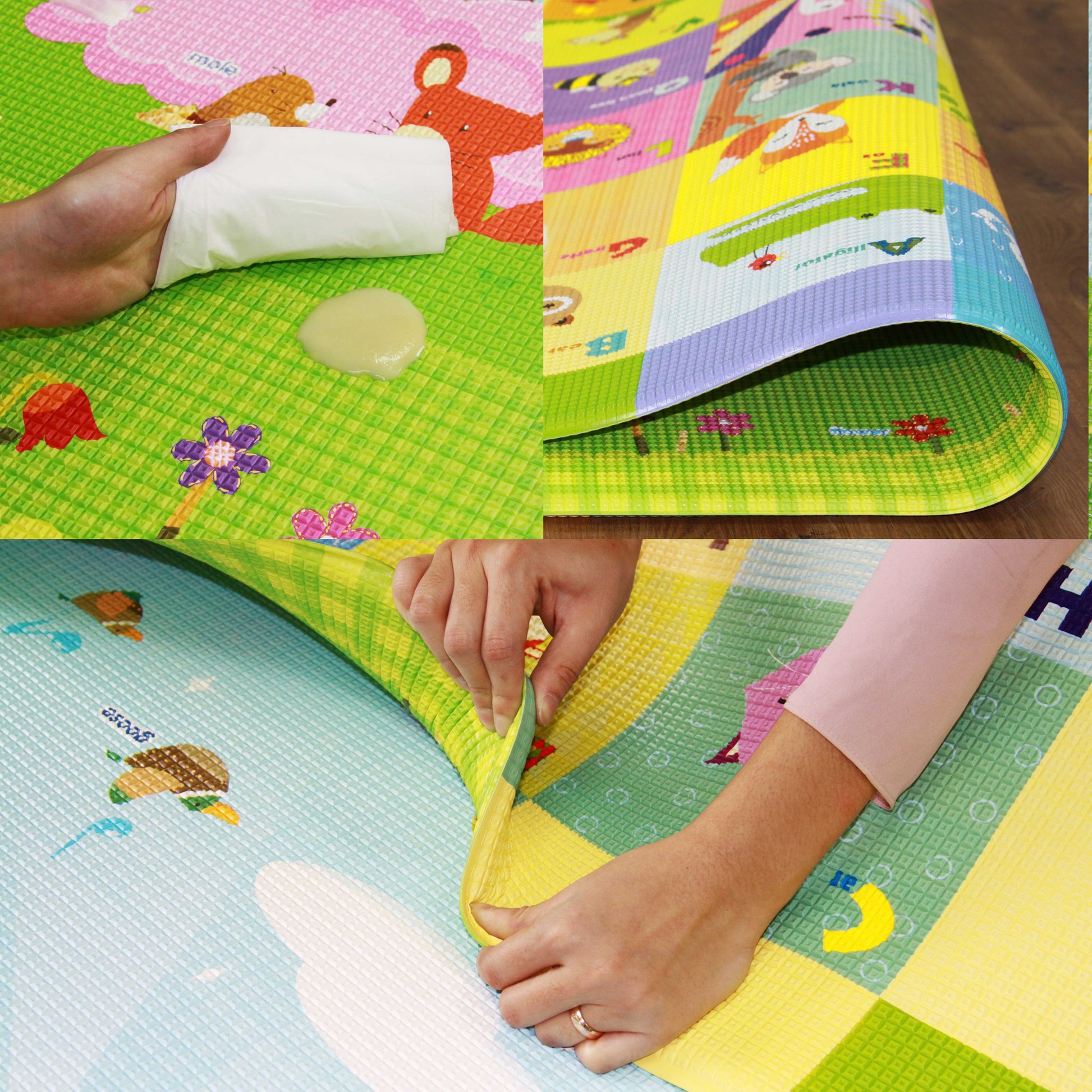 Transform any floor into a safe, stimulating space for baby with this ultra-cushy playmat that absorbs the impact of falls and tumbles as they discover the world around them. Larger than conventional mats, it provides little ones and family members plenty of room to bond and grow. Each mat is reversible, with educational, stimulating illustrations for a baby on one side and an interior design aesthetic on the other. An extra-durable, one-piece design makes it easy to clean, roll away, and enjoy for years to come.